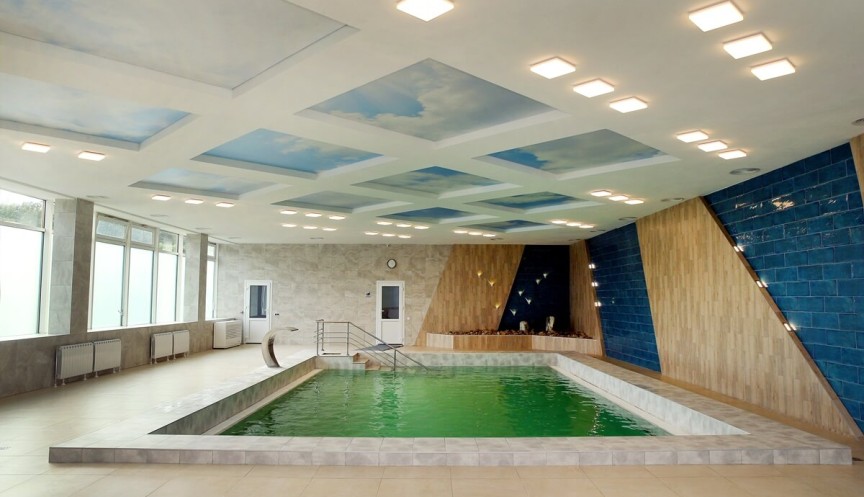 Вода в бассейне готовится на основе рассолов высокой минерализации.
