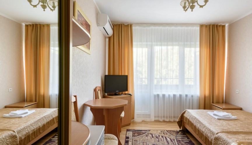 Кондиционеры есть во всех номерах категории Апартамент, Люкс и Одноместный стандарт I категории в 1-2 корпусе. В других категориях номеров кондиционеров нет.