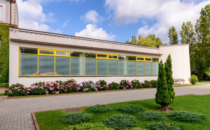 Основная часть лечебной базы и бассейн с минеральной водой расположена в Главном корпусе на первом и втором этажах.