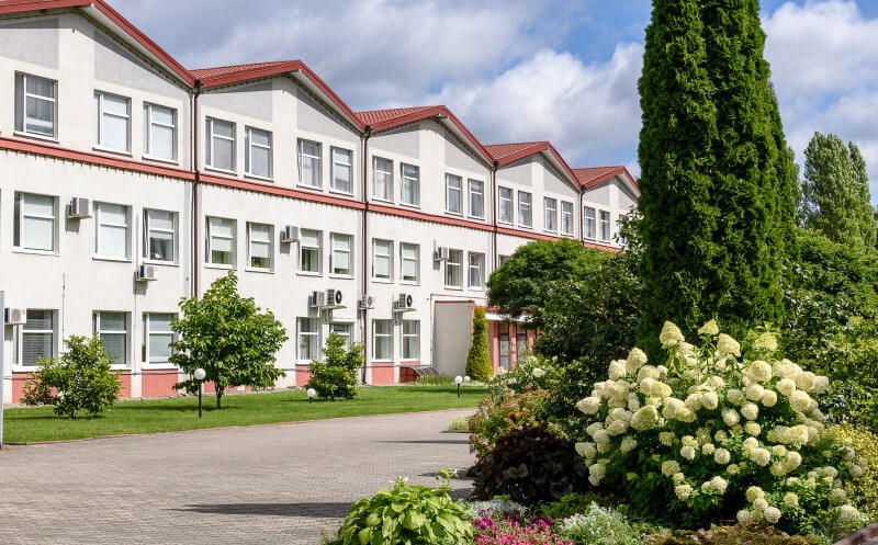 Первый и Второй жилые корпуса связаны с Главным корпусом закрытым переходом на уровне второго этажа.