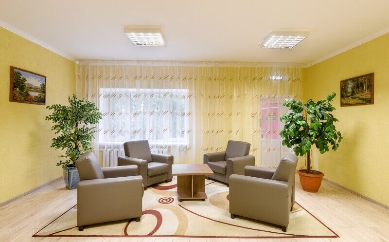 Каждый этаж корпуса оборудован уютными холлами, которые создают атмосферу для отдыха и приятного общения, позволяя гостям расслабиться и насладиться временем, проведенным в санатории.
