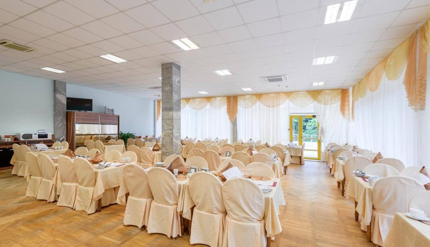 В санатории предлагается трёхразовое диетическое питание по системе «заказное меню». Каждый отдыхающий выбирает блюда по своему предпочтению из предлагаемых вариантов.