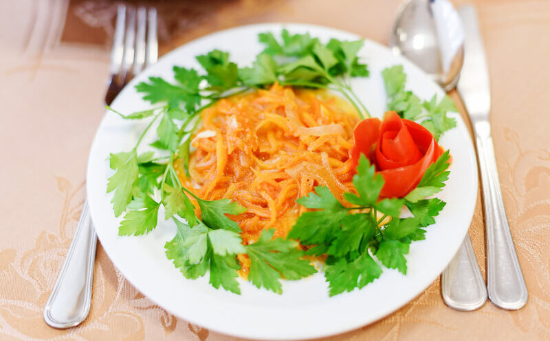 Питание в столовой по системе заказного меню. В первый день дежурные блюда, в последствии отдыхающий выбирает из двух-трех вариантов на выбор блюда.