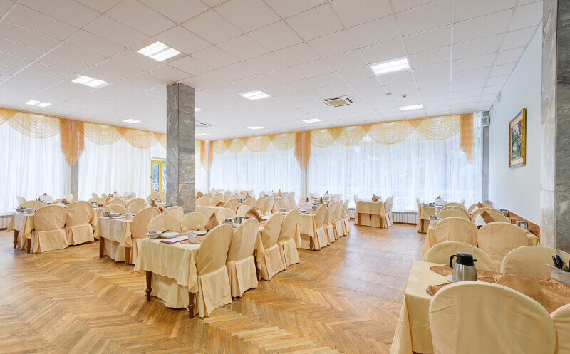Диетические столы № 5, 5а, 8, 9, 10, 10и,15 назначается врачом при первой консультации в день заезда. В меню круглогодично включаются свежие овощи и фрукты, кисломолочная продукция.