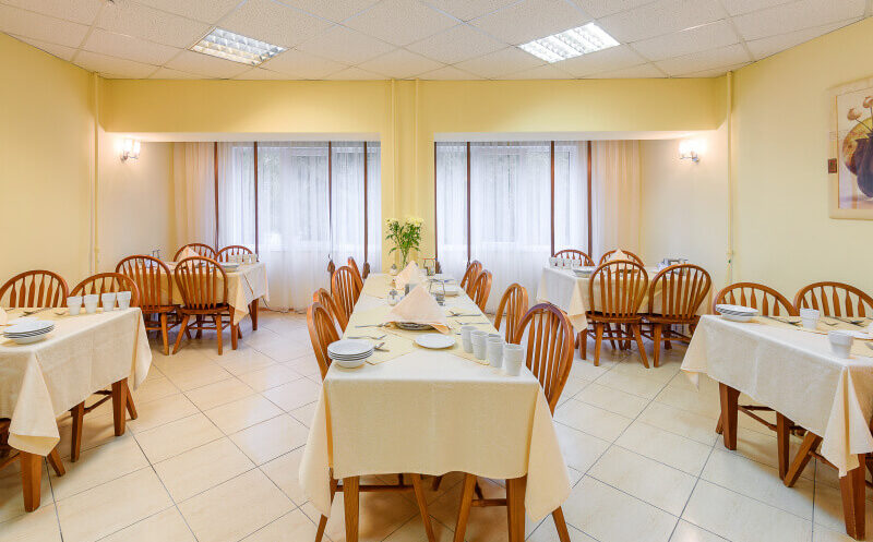 - Столовая для проживающих в I и II втором жилом корпусе расположена в Главном корпусе